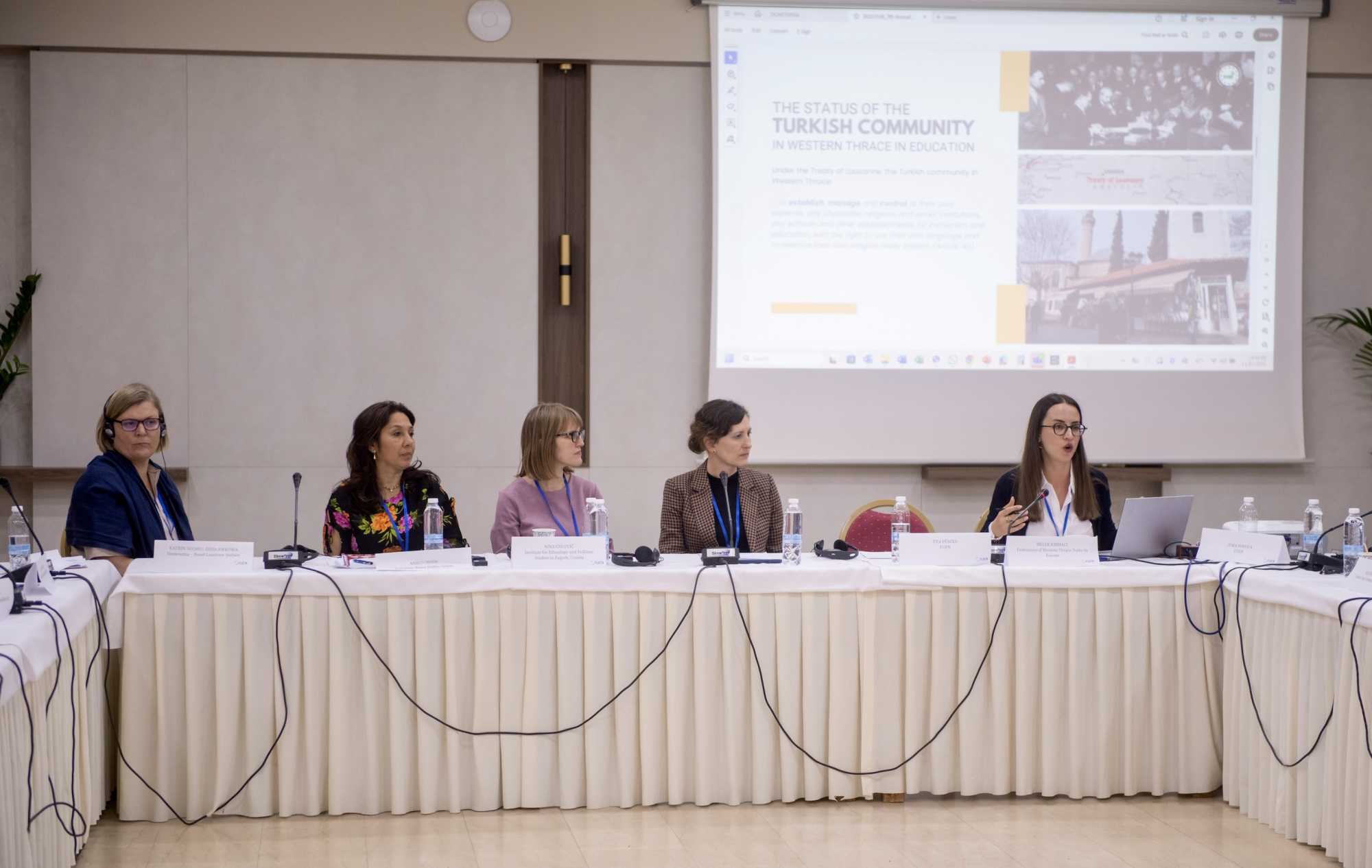 In den anschließenden Podiumsdiskussionen berichteten die Teilnehmenden, dass Minderheitenbildung in vielen Regionen von sinkenden Schulzahlen, Lehrkräftemangel, veralteten oder unzureichenden Lehrmaterialien und begrenzter institutioneller Unterstützung geprägt ist. Berichte aus Westthrakien, vorgestellt von Melek Kırmacı, Prof. Dr. Fırat Yaldız, Aydın Ahmet und Ahmet Kara, hoben die starke Reduktion der Zahl der Minderheiten-Grundschulen hervor, die Existenz von nur zwei Minderheiten-Schulen der Sekundar- und Oberstufe, das Fehlen von Kindergärten mit Unterricht auf Türkisch sowie den abnehmenden Einfluss des Minderheitenlehrplans. Die Delegierten stellten fest, dass die verringerte Autonomie der Schulräte und Verwaltungsreformen das System zusätzlich geschwächt haben.